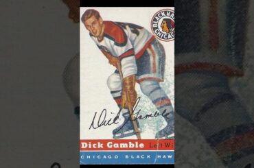 Un examen plus approfondi de la carte de hockey NHL 1954-55 O-Pee-Chee 1 avec Dick Gamble des Blackhawks de Chicago.…