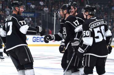Quinton Byfield passe en mode LA Laker alors qu’il lance une rondelle sous laquelle Adrian Kempe patine et s’envole haut…