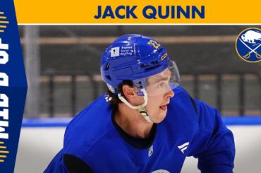 L’attaquant de Buffalo Sabres Jack Quinn était micro à l’entraînement fin février 2025. Avec des interactions avec JJ Peterka, Dennis…