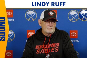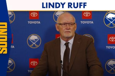 L’entraîneur-chef de Buffalo Sabres, Lindy Ruff, a parlé aux médias après une défaite de 6-2 contre les Sharks de San…