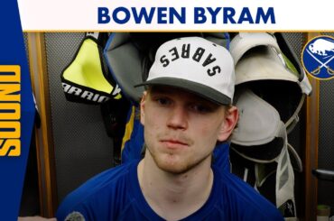 Le défenseur de Buffalo Sabres Bowen Byram a parlé aux médias après une défaite contre les Sharks de San Jose…
