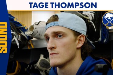 L’attaquant de Buffalo Sabres Tage Thompson a parlé aux médias après une défaite de 6-2 contre les Sharks de San…