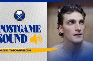 L’attaquant des Sabres de Buffalo, Tage Thompson, s’est entretenu avec les médias après la défaite 7-4 de l’équipe contre les…