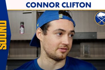 Le défenseur des Sabres de Buffalo Connor Clifton s’est adressé aux médias après une défaite de 3-1 contre les Bruins…