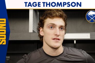 L’attaquant des Sabres de Buffalo, Tage Thompson, s’est entretenu avec les médias après la défaite 7-1 de l’équipe contre les…