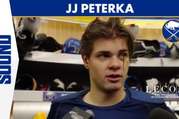 L’attaquant des Sabres de Buffalo, JJ Peterka, s’adresse aux médias après l’entraînement et explique ce qu’il ressent après avoir quitté…