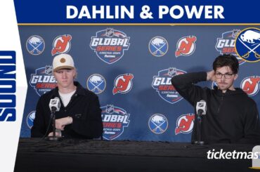 Les défenseurs des Sabres de Buffalo Rasmus Dahlin et Owen Power se sont entretenus avec les médias après l’entraînement à…