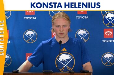 Konsta Helenius, espoir des Sabres de Buffalo, s’adresse aux médias après l’entraînement alors que l’équipe se prépare pour le Prospects…