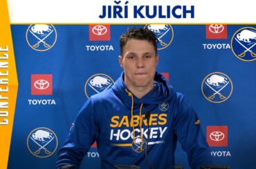 Jiri Kulich, espoir des Sabres de Buffalo, s’adresse aux médias après l’entraînement. Kulich s’exprime alors qu’il se prépare pour le…