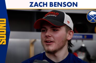 L’attaquant des Sabres de Buffalo Zach Benson s’adresse aux médias après une victoire de 4-0 contre les Islanders de New…