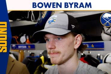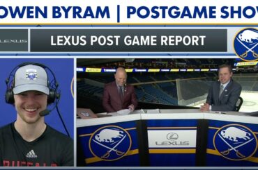 Le défenseur des Sabres de Buffalo Bowen Byram a rejoint Brian Duff et Marty Biron à l’émission d’après-match après la…