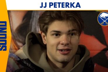 L’attaquant des Sabres de Buffalo JJ Peterka s’est entretenu avec les médias avant le match de l’équipe contre les Red…