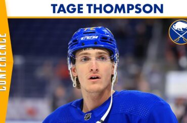 L’attaquant des Sabres de Buffalo, Tage Thompson, s’est entretenu avec les médias après la mêlée instrasquad Blue & Gold le…