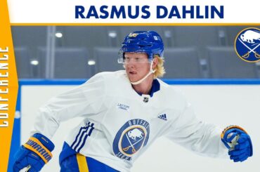 Le défenseur des Sabres de Buffalo Rasmus Dahlin s’est entretenu avec les médias après la mêlée Bleu et Or le…