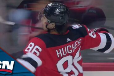 Regardez Jack Hughes se faufiler à travers plusieurs défenseurs des Flyers de Philadelphie en entrant dans la zone offensive et…