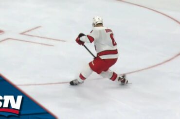 Regardez comment Brent Burns des Hurricanes de la Caroline déchire un côté court ponctuel sur le gardien des Flyers de…