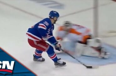 Regardez alors que l’attaquant des Rangers de New York Chris Kreider reçoit une passe de Mika Zibanejad, se dirige tout…