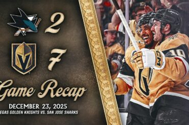 Les Golden Knights de Vegas ont battu les Sharks de San Jose, 7-2, le 23 décembre 2025, au T-Mobile Arena.…