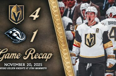 Les Golden Knights de Vegas ont battu les Mammoth de l’Utah, 4-1, le 20 novembre 2025, au Delta Center. N’oubliez…