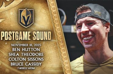 Ben Hutton, Shea Theodore, Colton Sissons et l’entraîneur-chef Bruce Cassidy s’adressent aux médias après le match de mardi soir contre…
