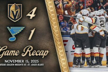 Les Golden Knights de Vegas ont battu les Blues de St. Louis, 4-1, le 15 novembre 2025, à l’Enterprise Center.…