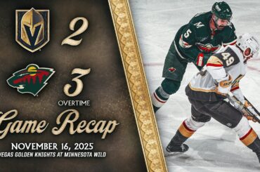 Les Golden Knights de Vegas sont tombés face au Wild du Minnesota, 3-2 en prolongation le 16 novembre 2025, au…
