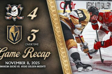Les Golden Knights de Vegas sont tombés face aux Ducks d’Anaheim, 4-3 en prolongation, le 8 novembre 2025 au T-Mobile…