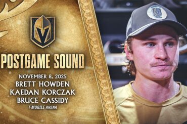 Brett Howden, Kaedan Korczak et l’entraîneur-chef Bruce Cassidy s’adressent aux médias après le match de samedi contre les Ducks d’Anaheim…