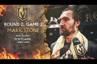 Mark Stone parle avec les médias après une défaite du match 2 de la série de deuxième tour entre les…