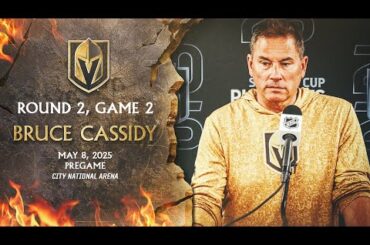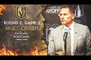 L’entraîneur-chef Bruce Cassidy parle aux médias après une défaite du match 2 de la série de deuxième tour entre les…