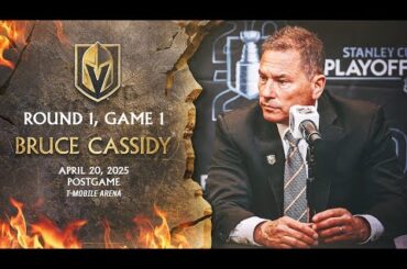 L’entraîneur-chef Bruce Cassidy parle des médias après une défaite de 5-2 dans le match 3 de la série de premier…