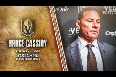 L’entraîneur-chef Bruce Cassidy parle aux médias après une défaite de 4-2 contre les Rangers de New York au Madison Square…