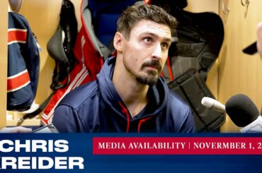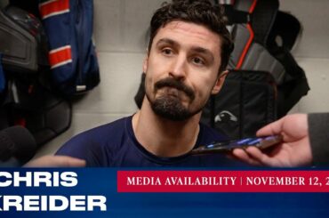 L’attaquant des Rangers de New York Chris Kreider répond aux questions des médias après l’entraînement du 7 novembre. » Abonnez-vous…