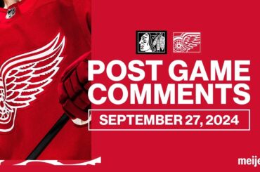 Christian Fischer, Alex Lyon et Derek Lalonde parlent avec les médias après la victoire 2-0 des Red Wings contre Chicago…