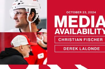 Christian Fischer et Derek Lalonde parlent avec les médias suite à l’entraînement des Red Wings le mercredi 23 octobre 2024…