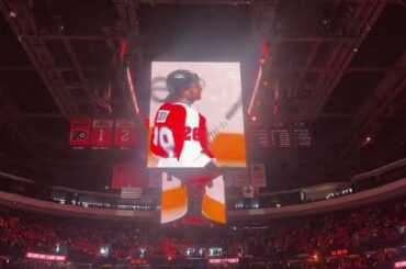 Claude Giroux reçoit une ovation debout après une vidéo hommage lors de son premier match de retour à Philadelphie contre…