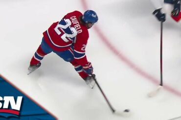 Regardez l’attaquant des Canadiens de Montréal Cole Caufield marquer son 22e but de la saison en divisant la défensive des…