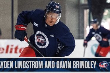 CAYDEN LINDSTROM et GAVIN BRINDLEY s’expriment après le premier jour du camp de développement des Blue Jackets 2024 ! ⛺️🏒…