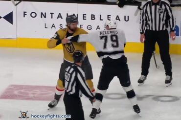 Nicolas Hague vs Samuel Helenius du match de Los Angeles Kings à Vegas Golden Knights le 9 mars 2025. Via…