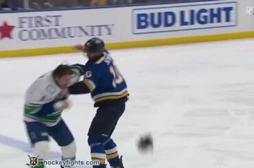 Brayden Schenn vs JT Miller des Canucks de Vancouver au St Louis Blues le 27 janvier 2025. Via https://www.hockeyfights.com