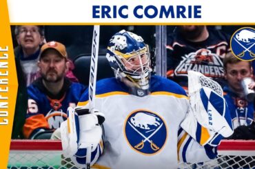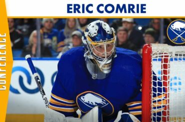 Le gardien de but des Sabres de Buffalo, Eric Comrie, s’est adressé aux médias le 10 janvier 2023 après la…
