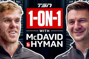Les coéquipiers des Oilers d’Edmonton, Connor McDavid et Zach Hyman, discutent des compétences de Hyman avec le bâton et avec…