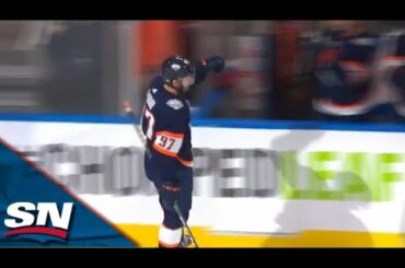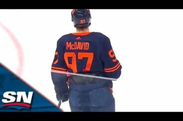 Regardez le capitaine des Oilers d’Edmonton, Connor McDavid, chuter brièvement, mais se relever pour faire une douce passe à Leon…