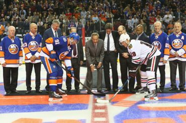 Le propriétaire des Islanders de New York, Charles Wang, est accompagné du maire Bill de Blasio, ainsi que de grands…