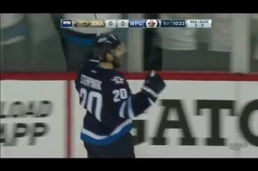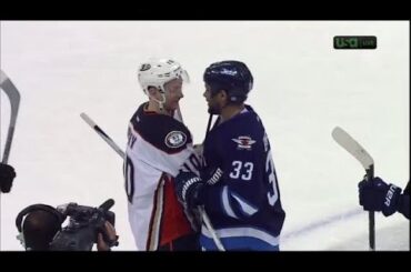 L’attaquant des Jets de Winnipeg Lee Stempniak claque la rondelle derrière le gardien des Ducks d’Anaheim Frederik Andersen, ce qui…