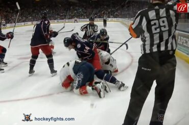 Nick Cousins contre Erik Gudbranson des Panthers de la Floride lors du match des Blue Jackets de Columbus le 10…