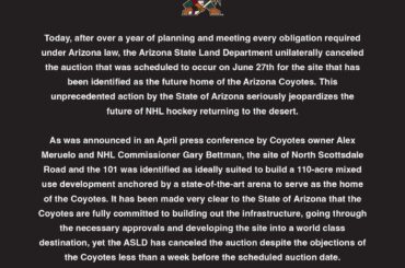 Dernières nouvelles : les Coyotes de l’Arizona reviennent dans un doute sérieux alors que l’enchère des terres d’Arizano est ANNULÉE. Restez…