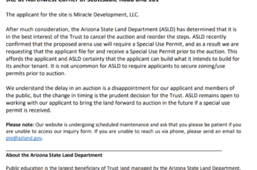 La vente aux enchères du terrain sur lequel l’ancienne propriété des Coyotes de l’Arizona prévoyait de soumissionner a été annulée.…