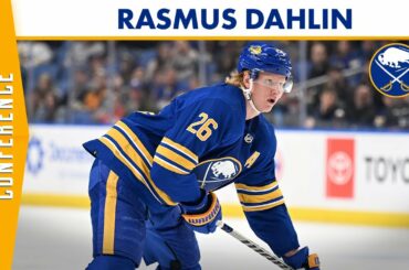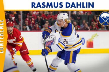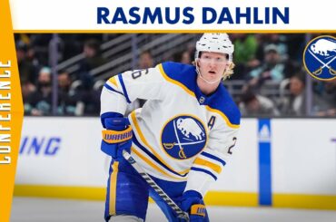 Le défenseur des Sabres de Buffalo, Rasmus Dahlin, s’est adressé aux médias après avoir battu les Flames de Calgary par…