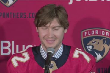 Sergei Bobrovsky, Anton Stralman, Brett Connolly, Noel Acciari, Dale Tallon et Joel Quenneville des Panthers de la Floride ont tenu…